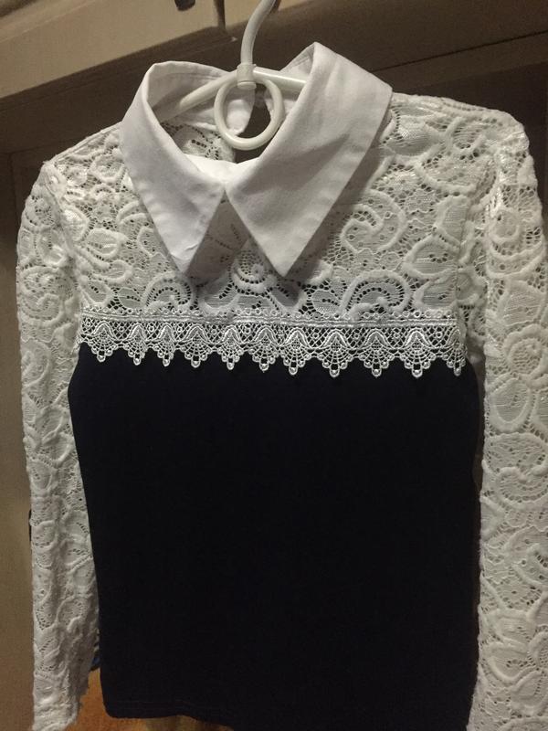 Дуже симпатичний гольф з білим мереживом 116/122 для школи дуже зручно і гарно в шкарпетки був не часто