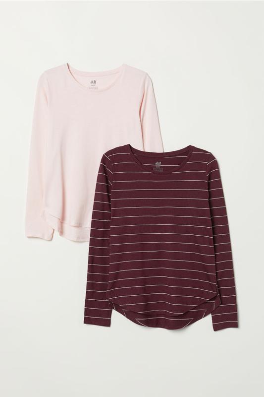 Комплект регланов девочке № 418 нежно пудровый и бордо в полоску, нежные, мягенькие 8/10 лет - пог 36 см, плечи 30 см, рукав 54 см, длина 48/52 см