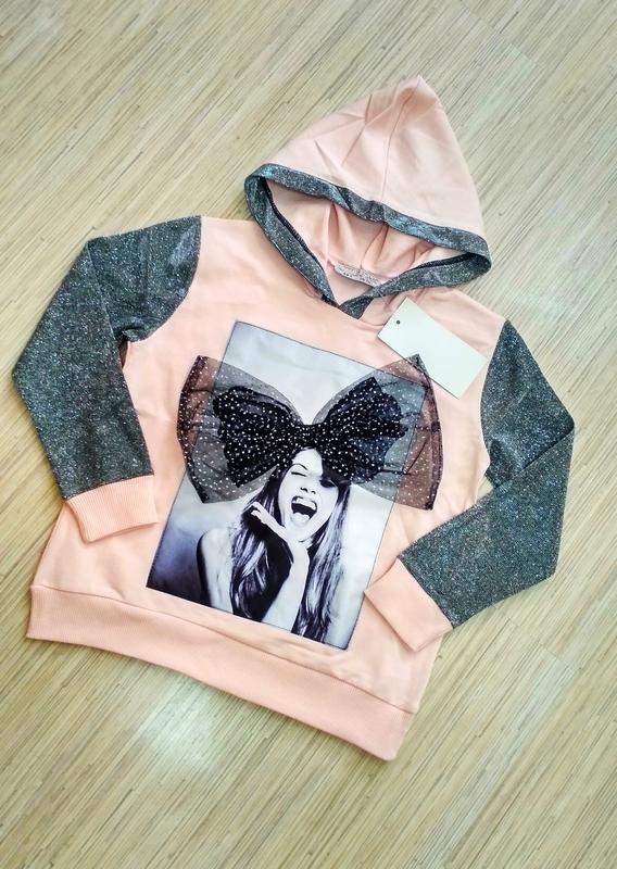 Дуже модний світшот для дівчаток, не залишить байдужою Вашу модницю!;) Дана моделька укорочена, вільного крою. Відмінна якість, акуратний пошиття, дуже дорого виглядає. Виробник Туреччина. Колір: пудра, рукави сірі з люрексом. При денному освітленні, ну дуууже виглядає бомбезно. Розмірний ряд: 6/7, 8/9 Виміри: Розмір: довжина/рукав/ширина/плечі 6/7 років: 45/43/39/33 8/9 років: 47/46/40/34