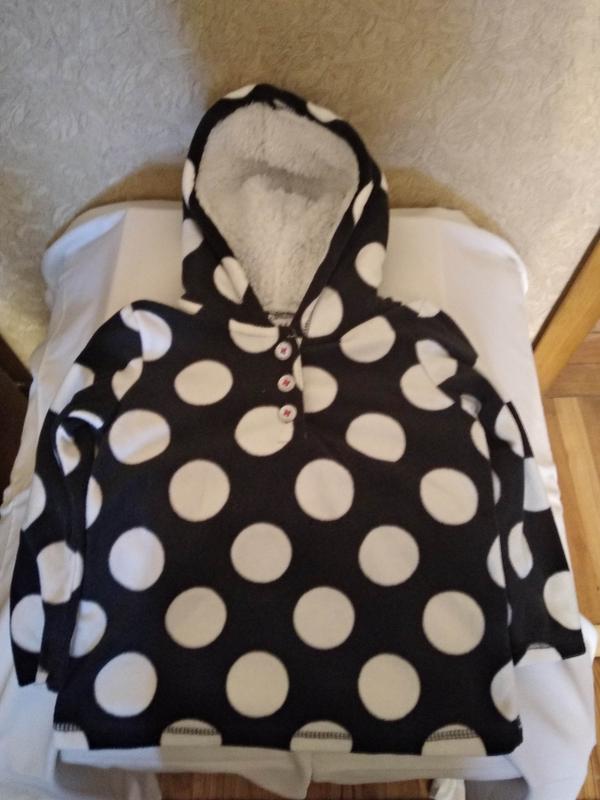 Флісова кофта бренду Carter ' s з капюшоном, купувалася на офіційному сайті, в ідеальному стані (одягалась кілька разів). Фліс середньої щільності, дуже якісний, красивий колір. Етикетки на 24 місяці. Заміри: довжина від плеча - 40 см, довжина по середині спинки - 37 см, довжина рукава - 32 см, ширина (на рівні пройми) - 31 см, висота капюшона - 26 див.