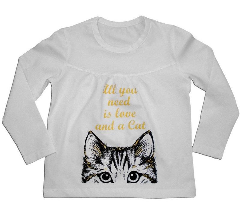 Красива блуза для дівчинки з відкритою горловиною і довгим рукавом. Верх виробу на кокетці, нижня частина блузи присобрана по лінії кокетки і прикрашена милим принтом. Колір: Білий; Полотно: Стрейч-кулір; Склад: 95% бавовна, 5% еластан; Оформлення: Пряма трансферна друк (накат);