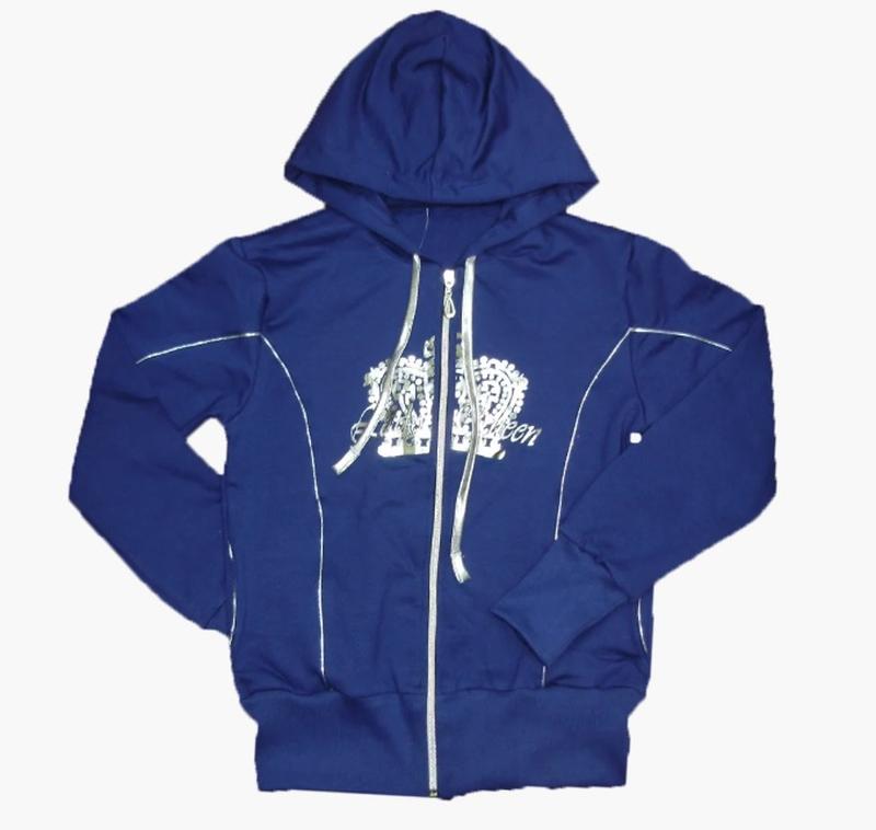 Гарна кофта для дівчинки на блискавці, комір капюшон, низ рукавів на манжетах. Кофти прикрашена накатом "Карона". Колір: Синій; Полотно: Футер без начісування (2-х нитковий); Склад: 95% бавовна, 5% еластан; Оформлення: Пряма трансферна друк (Накат) ; В наявності зріст 158