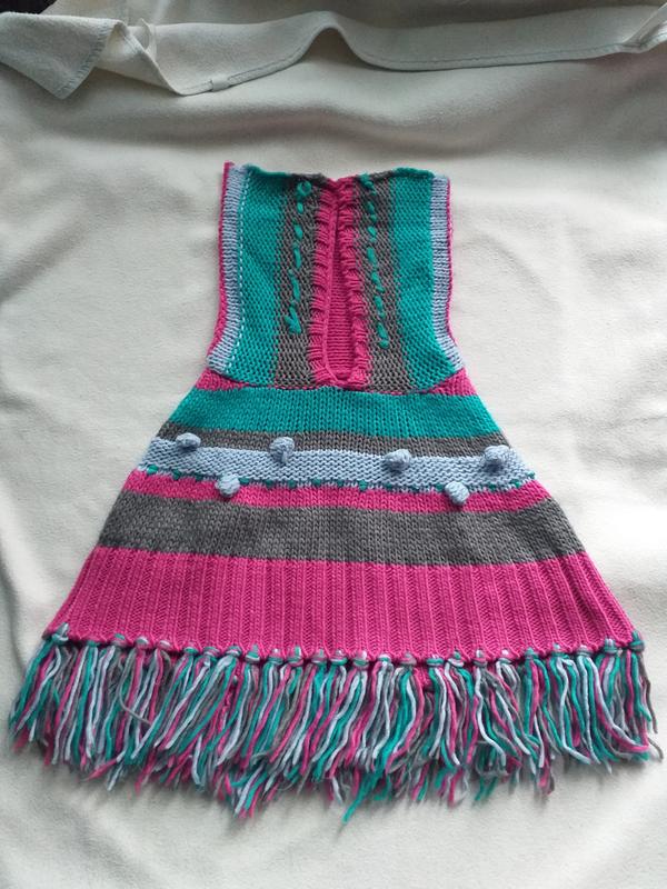 Ширина горловини 21см, висота горловини 19см, ширина низу 47см,довжина пончо з рюшами 50см і 31 см без горловини.