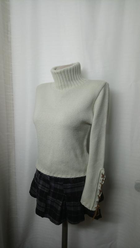 Симпатичный свитерок Цвет сливочный с мятным оттенком Изюминка - Рукав с шнуровкой Дл.из - 46,5, плечи - 36 Пог - 39, низ - 38 Рукав - 51