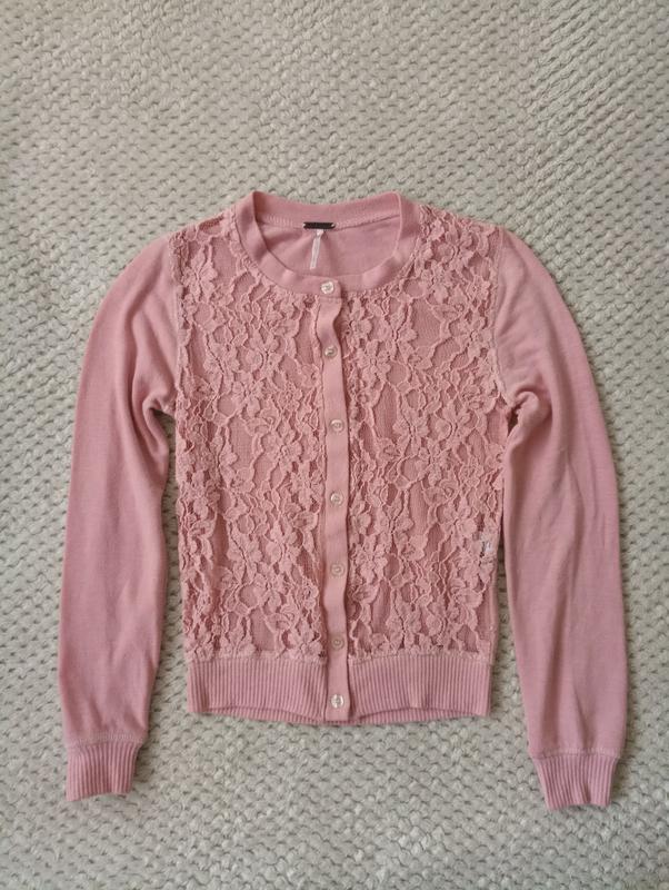 ошатна кофта на 7-8лет спереду ажурне мереживо довжина 46см ширина 35см довжина рукава від плеча 57см