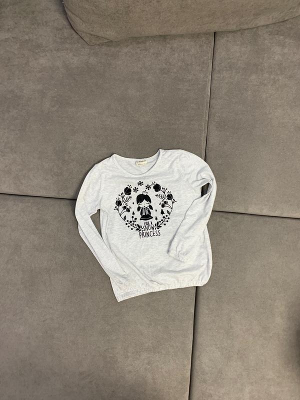 Базова річ, лонгслив. Красивий оксамитовий принт {малюнок принцеси}. Розмір на бірці: 128-134 см Стан: ідеал Виміри: загальна довжина 49 см ПОГ 38 ПОТ 37 см Плече 6,5 см Рукав 45 см #111