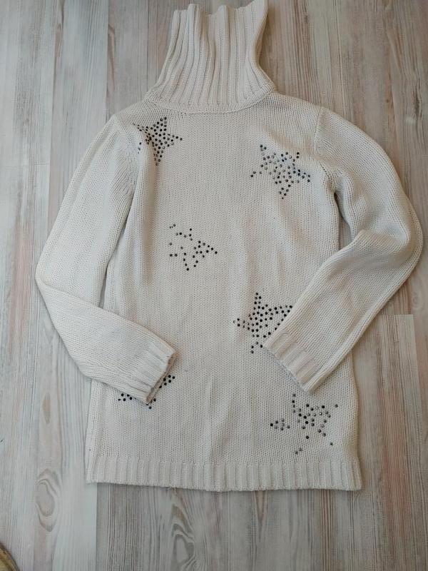 Предлагаю вашему вниманию свитер девочке 10-13лет, состояние хорошее, дефектов ( дырок, пятен, потертостей) нет, спереди не хватает нескольких страз замеры длина 61см, плечи 36см, рукав 56см, ПОГ 42см, внизу 42см, хомут 19см