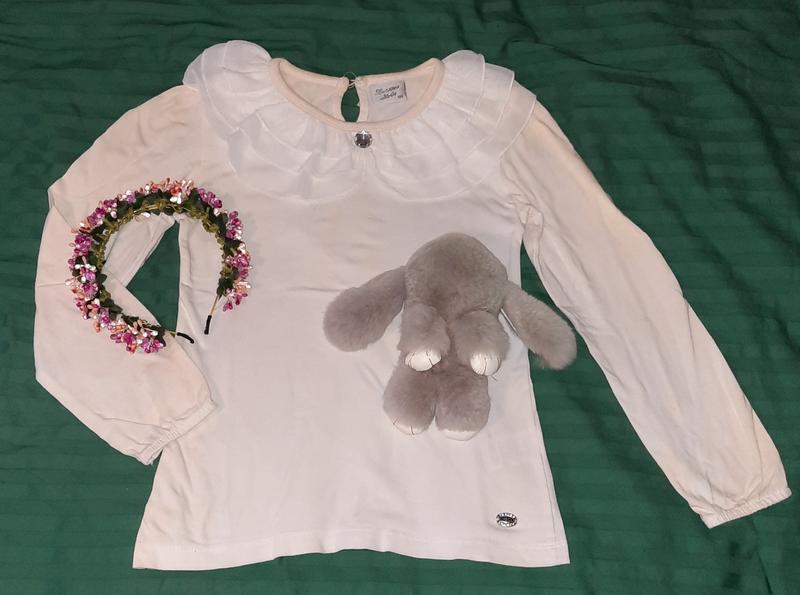 Блуза на дівчинку зріст 128 см., шкільний варіант, бавовна. на грудях незначні цятки, не дуже помітні, можна під сарафан, в цілому стан добрий, ціну за це знизила.