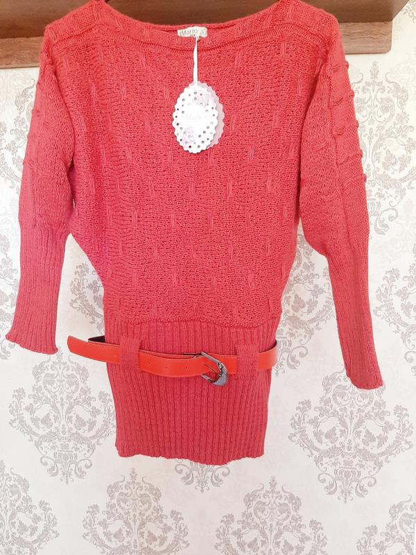 Кофта малинового кольору Marions (Туреччина) з широчезною резинкою на якій є петельки під поясок (в упаковці його немає)можна носити без нього або підібрати який вам підійде до лиця. Виріз горловини човник, рукави летюча миша. По всьому виробу до основної нитки додано люрексову нитку малинового кольору.На фото є шкала різновидності відтінків, для цього виробу найбільш підходить темно-розовий або фрез, в залежності як падає світло. На фото не вдалося відтворити колір Довжина кофти 64 см Висота гумки 23,5 см Ширина гумки 33см тягнеться до 43см Манжет на рукаві 20см