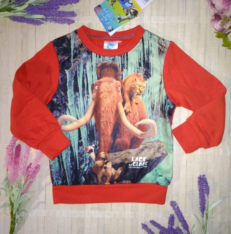 Яскравий світшот з теплою внутрішньою поверхнею з героями Льодовикового періоду. Передня кольорова частина - 100% поліестер, Рукави і спина - 35% бавовна, 65% поліестер. Манжети і горловина подвійні. Розмір вказаний 3 роки. Приблизний зріст 98 см. ВИМІРИ В СПОКІЙНОМУ СТАНІ: Ширина в плечах – 28,5 см Ширина в грудях - 34 см Довжина від плеча горловини / коміра - 7 см Довжина рукава від плечового шву - 35,5 см Довжина виробу по спині - 42,5 см Відправка Новою поштою, Укрпоштою, РОЗЕТКА по повній передоплаті на карту Приватбанку . Налож.платіж можливий тільки Новою поштою з передоплатою за доставку на обидві сторони в розмірі 150 грн(автоматично віднімається з загальної суми).