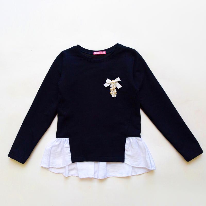 Стильная, нарядная и практичная кофта для девочки в школу Кофта-блуза-обманка выполнена из высококачественного трикотажа, в составе 65% хлопка 35% п/э. Кофта-обманка это сочетание трикотажной кофты и рубашки. Кофта украшена съемной брошью в форме грозди жемчужин. Модель отлично сочетается с лосинами, брюками и юбками. Размеры: 122, 128, 314, 140, 146, 152. Полномерные, соответствуют росту. рост 122 длина полочка 44 см., длина спинка 50 см., длина рукава 44,5 см., полуобхват груди 33 см. рост 128 длина полочки 46,5 см., длина спинка 53 см., длина рукава 47 см., полуобхват груди 34 см. рост 134 длина полочка 49 см., длина спинка 56 см., длина рукава 48 см., полуобхват груди 35 см. рост 140 длина полочка 51 см., длина спинка 57 см., длина рукава 52 см., полуобхват груди 36 см. рост 146 длина полочка 54 см., длина спинка 59 см., длина рукава 52,5 см., полуобхват груди 37,5 см. рост 152 длина полочка 55 см., длина спинка 61 см., длина рукава 53 см., полуобхват груди 38 см. Пересылаем Новой почтой, Укрпочтой, по 100% предоплате. Работаем официально. Имеет отличные отзывы, высокий рейтинг.