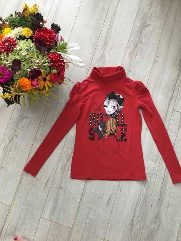 На тілі немає) виміри на фото)гарна кофта з симпатичним малюнком,комір стійка гольф,рукава довгі на плечах складки-ліхтарики,на грудях малюнок-дівчинка з бантом -дэкор ) Лого Here + Here There + There – демократичний стиль, лояльні ціни і жіночність для дітей і підлітків від 7 до 14 років. З повагою до їх думку, до їх вибору. Одягатися модно і при цьому без зайвих витрат цілком можливо. Одним з найбільш потужних квітів у всій кольоровій гамі вважається червоний. Червоний – насамперед, колір пристрасті, сильної енергетики. ... Це символ повної життя, краси, величі, але, разом з цим, він володіє енергією тепла, любові і комфорту. Гольф (або водолазка, бадлон) — тонкий, облягаючий тіло светр з високим, вузьким, зазвичай отворачивающимся коміром.