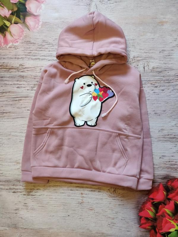 шикарне худі тканина тринить з начосом заміри:довжина\ширина\довжина рукава від горловини 134 зріст-48\44\55 140 зріст-49\45\57 152 зріст-53\48\62 158 зріст-56\47\64 164 зростання-57\51\66