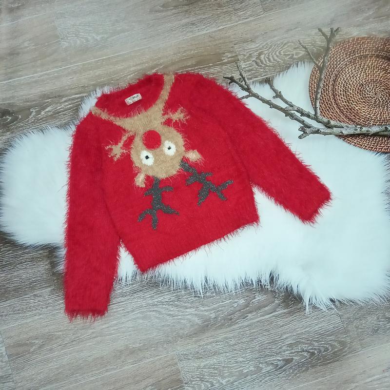 Красивий светр травичка Next. теплий, м'який пухнастик новорічна тематика стан светри відмінне за бирці на 5-6л , дл 40 пог 34 рукав від плеча 41 Плечі-30см