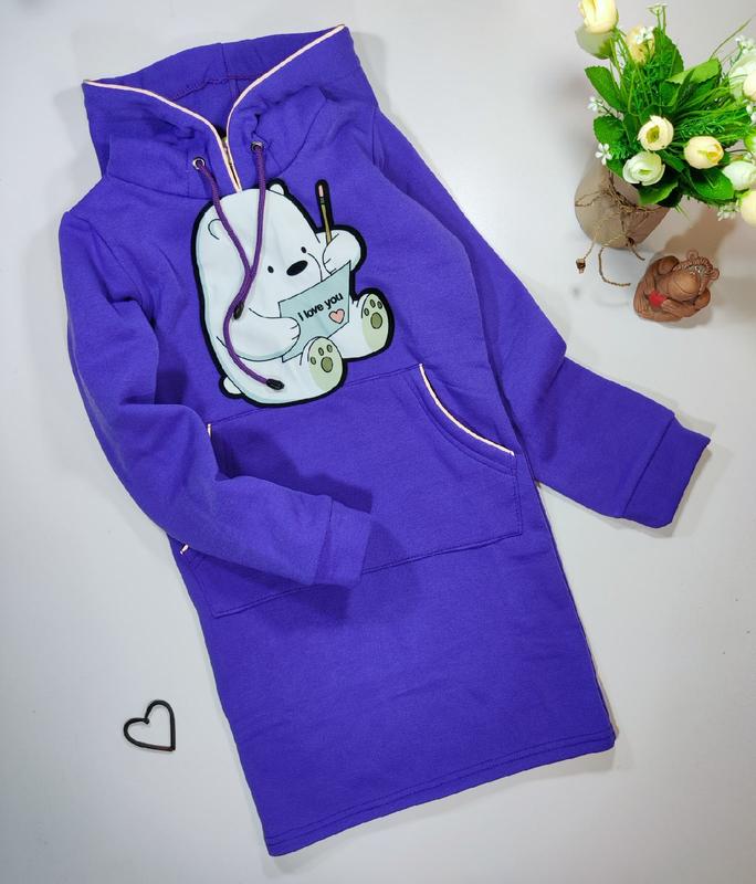 стильная теплая туника с капюшоном и карманом кенгуру на рукавах манжеты со светоотражающими элементами аппликация пришита 🦊трехнитка с начесом цвет сирень РЕКОМЕНДУЮ!!!! размер/🦊длина/пог/рукав 134/🦊63/38/48-1шт 158/🦊75/42/58-1шт
