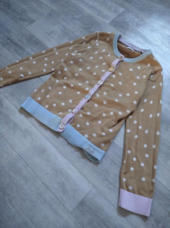 Кофта для дівчинки коричнева в горошок. Заміри: рукав-42 см, довжина по спинці 39 см, пог 32 див.