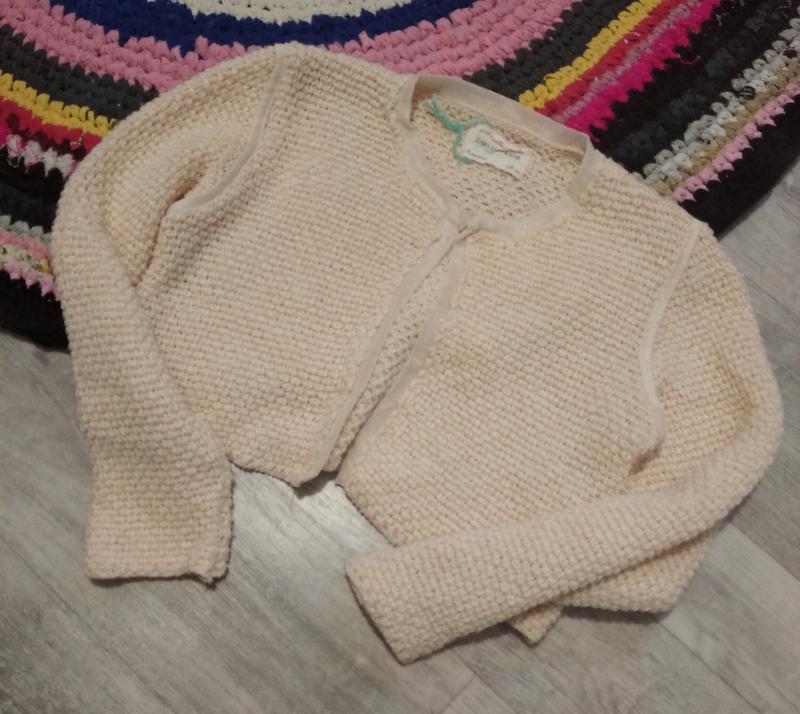 Болеро/ накидка для дівчинки бежевого кольору. плечі 30 см, довжина по спинці 29 см, рукав-42 см, пог 36 див.
