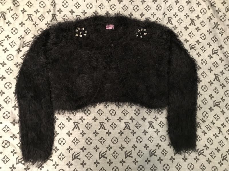 Дуже елевая кофта-болеро,дуже приємна на дотик,пухнаста,камінчики на місці все,8-9 років,відмінно підійде для школи Виміри плечі 29 см,рукав-52 см,довжина 32 см,під руками 40см тканина тягнеться підійде на будь-який обсяг,