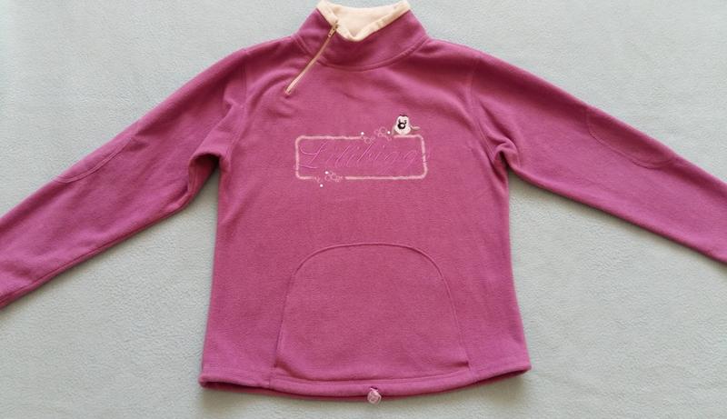 Дуже гарний оригінальний фліс для дівчинки. Стан дуже хороший. Заміри : плечі 33 см Пог 40 см Ширина знизу 40см Довжина плеча 8 см Рукав від плеча 44 см. Довжина 49 см