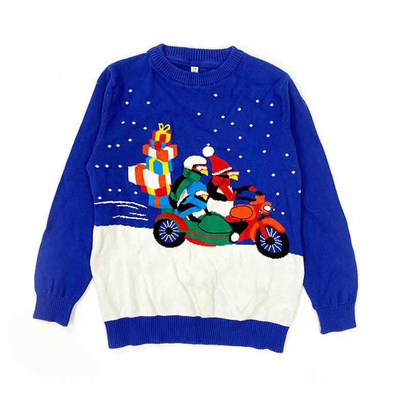 Справжній новорічний светр. Дуже приємний до тіла, бавовна. довжина 59 см, ширина-41 см, плечі 35 см, рукав-52 див. Тканина тягнеться.