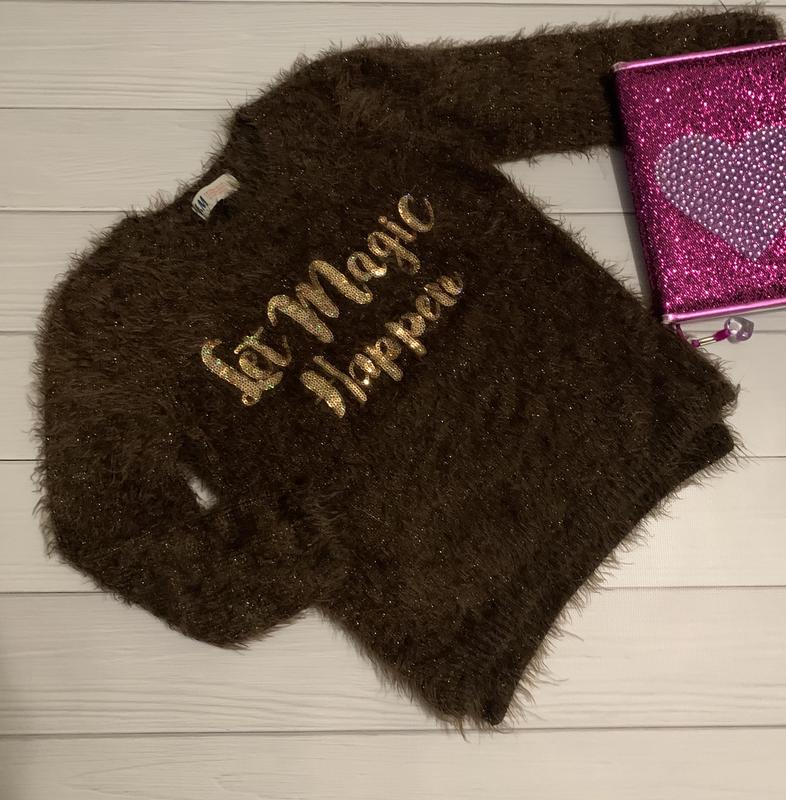 Шикарна кофта-травичка,приємного,шоколадного кольору,з золотими нитками та золотими паєтками. Дуже нарядно виглядає.По бірці на 4-6 років. Довжина-41,5 див.,рукав-37 див.,плечі-26,5 см. Ідеальний стан.