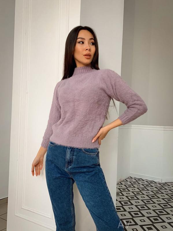 Пушистый свитер под горло🔝 Мод:438 Цвет: белый,темно-сиреневый, персик,голубой, чёрный Размер: универсал Ткань: мягкая ангора