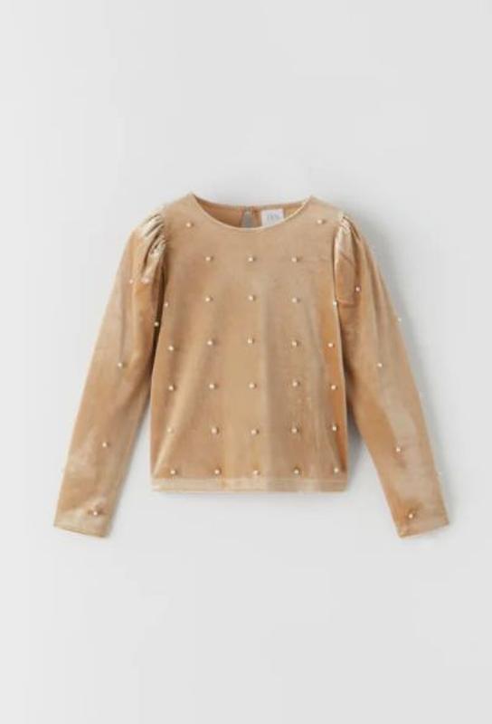 Модный бархатный топ для девочки от zara реглан кофта свитер жемчужины жемчужина