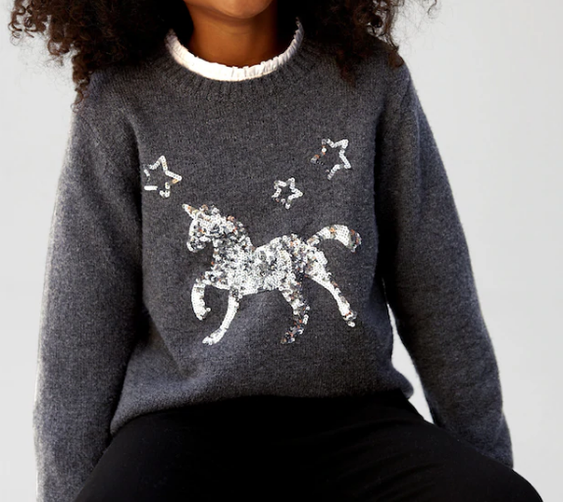 Кофта с единорогом в пайетки 11-12 лет Длина 53 см Плечи 34 см Рукав 50 см Ширина под рукавами 45 см