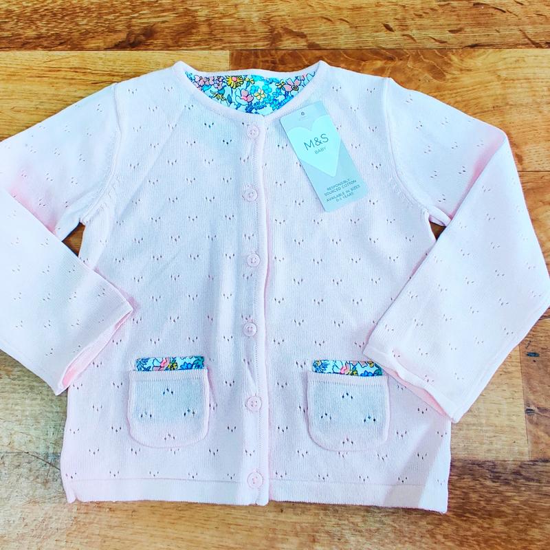 В'язана кофточка на гудзиках Marks & Spencer. Колір ніжно-рожевий. Розмір: - 18-24 міс.(90 см) - 2-3 роки ( 98 см)