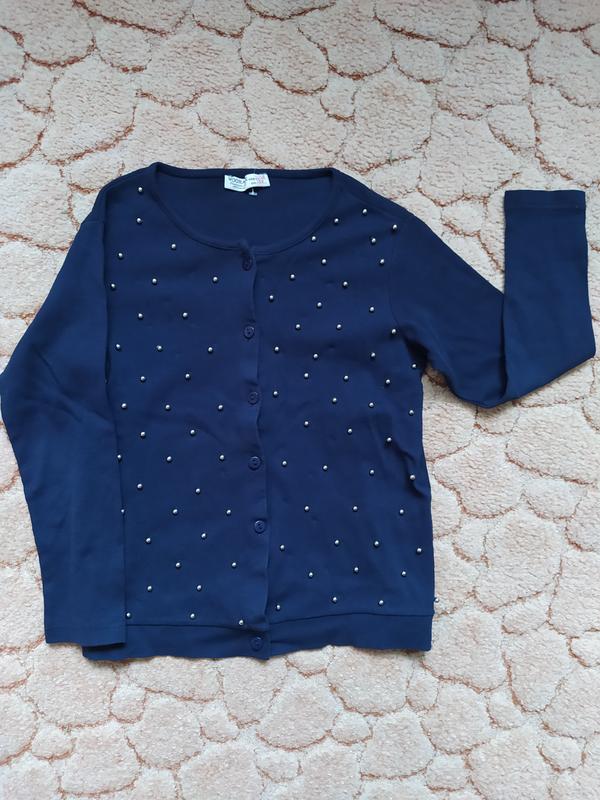 Кофточка на гудзиках. Декорована металевими намистинами. Трикотаж м'яка м'який і тонкий. Дуже зручно для школи.