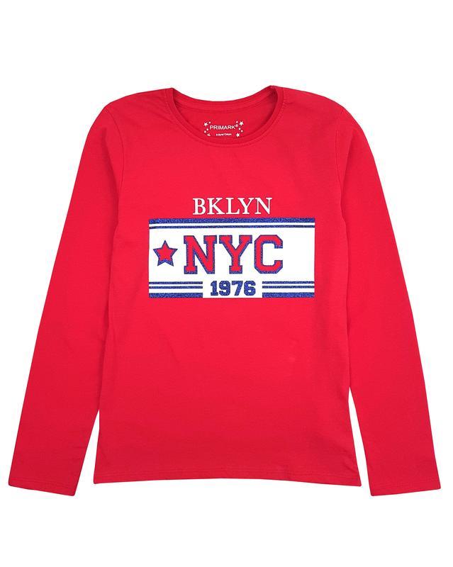 Стильный красный лонгслив, реглан с надписью на девочек, primark