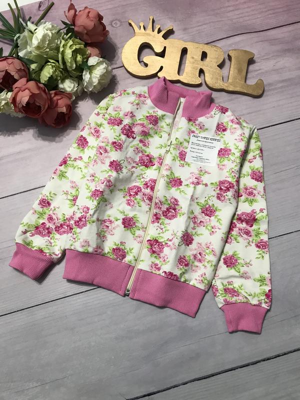 Курточка повсякденна з довгим рукавом, в модний квітковий принт, на блискавці. Бавовна двухнитка, щільний, якісний, стійкий до багаторазового прання