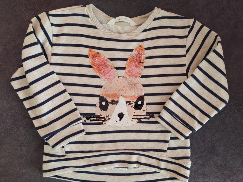 Свитшот с паетками. Понравится каждой малышке)) Замеры длина спереди от горловины- 29 см, сзади - 39см, рукавчик - 32 см, пог - 33см.