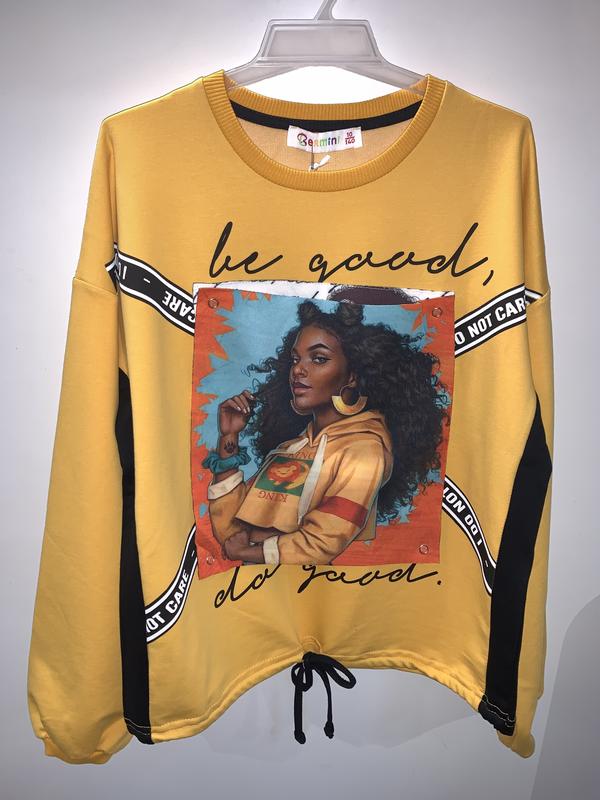 Красива жовта кофта з заклепками можна знімати і буде інший малюнок
