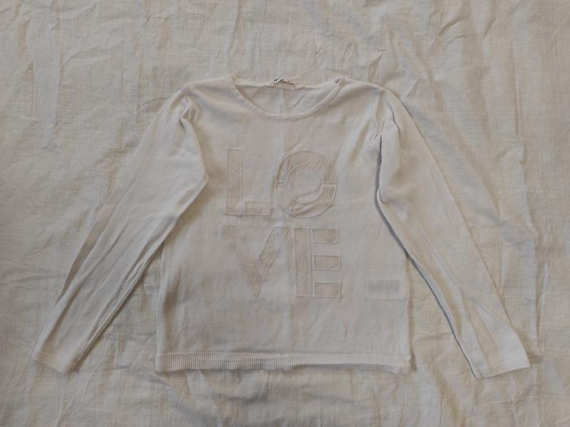 Реглан білий love 134/140 Довжина 45 см ширина 37 см довжина рукава 47,см