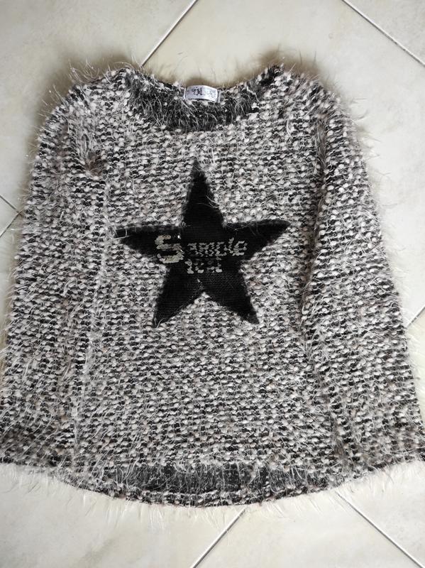 предлагаю стильный свитер для девочки. Букле, травка, декоративная звезда из паеток