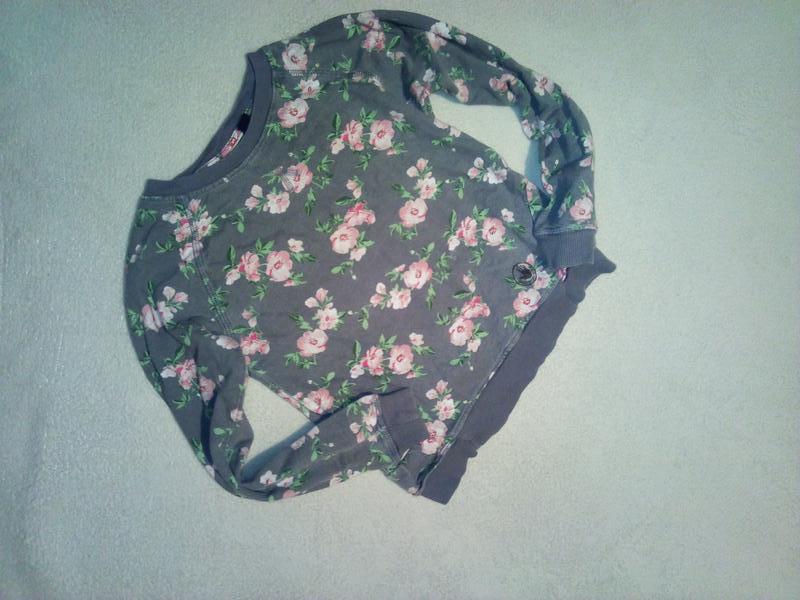 Красивий реглан в квітковий принт на дівчинку, розрахований на 8-9 років.Основний колір сірий.Дефектів немає.Виміри на запит