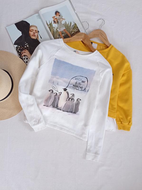 білий світшот прямого крою від H&M для дівчинки 13-14 років на зріст 158/164 см, тканина котон, З грудей 42 см, довжина 50 см, рукав-61 см
