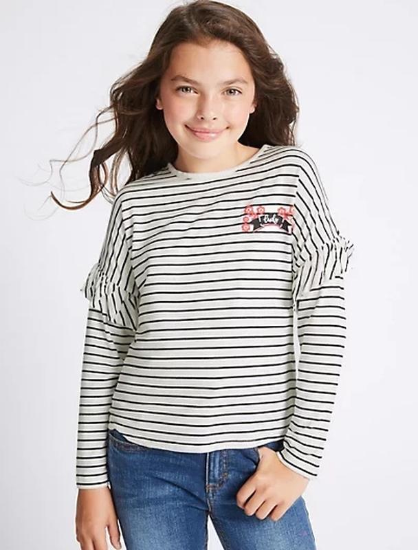 Смугастий реглан Marks and Spenser для дівчинки 11-12 років. Матеріал дуже приємний на дотик. Якість відмінна 💥 склад: 95% віскоза 5% еластан заміри: довжина 53см пог 44см рукав від горловини 65см ціна 230грн (на ціннику £14)