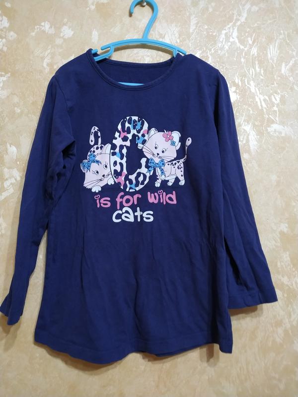 Хлопковый реглан синего цвета, украшен накаткой в виде котят. В связи с условиями продажи на Шафе (15% от стоимости, но не менее 10 грн), вещи с маленькой стоимостью продаются при условии приобретения на общую сумму от 70 грн