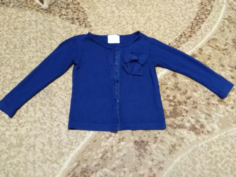 Легенька кофточка синього кольору від ZARA KNITWEAR на літні вечори. Розмір 98, по бірочці 2-3 рочки. Заміри на фото. Має катишки, в ціні враховано. Склад: 85% віскоза, 15% шерсть.