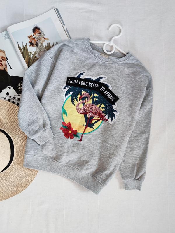 сірий світшот з аплікацією від Zara для дівчинки 9/10 років на зріст 140 см, З грудей 46 см, довжина 53 см