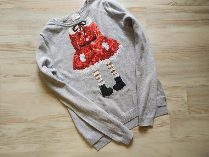 Святковий светр год паєтками від h&m, у відмінному стані. Розмір 6-8 років, 122-128 див. (плечі 27 см, ПО грудях 34 см, рукав-50 см, довжина 44.5 см/48 см)