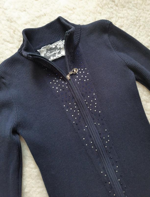 Длина 53 см, рукав от плеча 56 см, по шву 44 см, пог 34 см тянется. Камера искажает цвет в жизни темносиний.