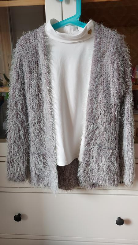 Кардиган "пухнастик" в отличном состоянии. Очень мягкий и стильный. Размер указан 7-8 лет. Замеры: длина 53 см., длина рукава -46 см.