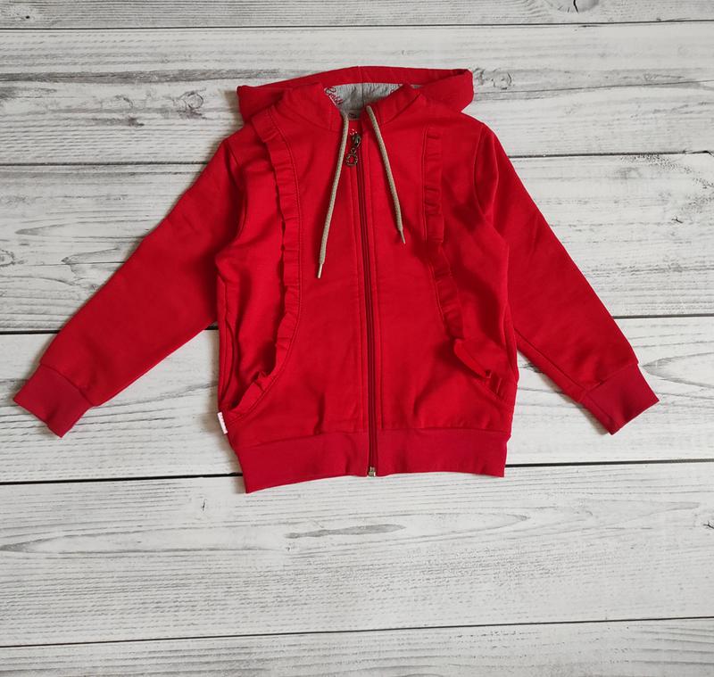 Кофта на блискавці з капюшоном і кишенями, утеплена зсередини Gabbi, р. 104 Носили при зрості 104-115 см , вдягнене декілька разів. Якість і стан шикарні!!! Заміри: рукав-40 см + 8 см плече, пог 30 см, пот 36 см, довжина 45 см