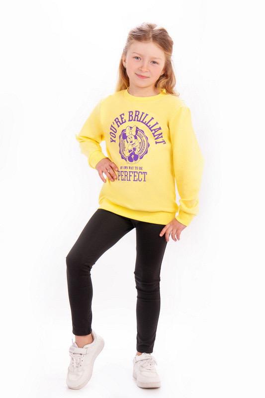 Базовий світшот вільного покрою з двониткового футера для дівчаток. Модель з довгими рукавами на манжетах, коміром-стійкою з еластичного матеріалу, з манжетом по низу виробу. Світшот представлена в декількох кольорах, на будь-який смак, образ відмінно доповнюється джинсами, спортивними штанами, спідницями. Полотно: двонитковий футер Склад: 80% бавовна, 17% поліестер, 3% еластан Рекомендації з догляду: праті за температури не більше 30 ° C.
