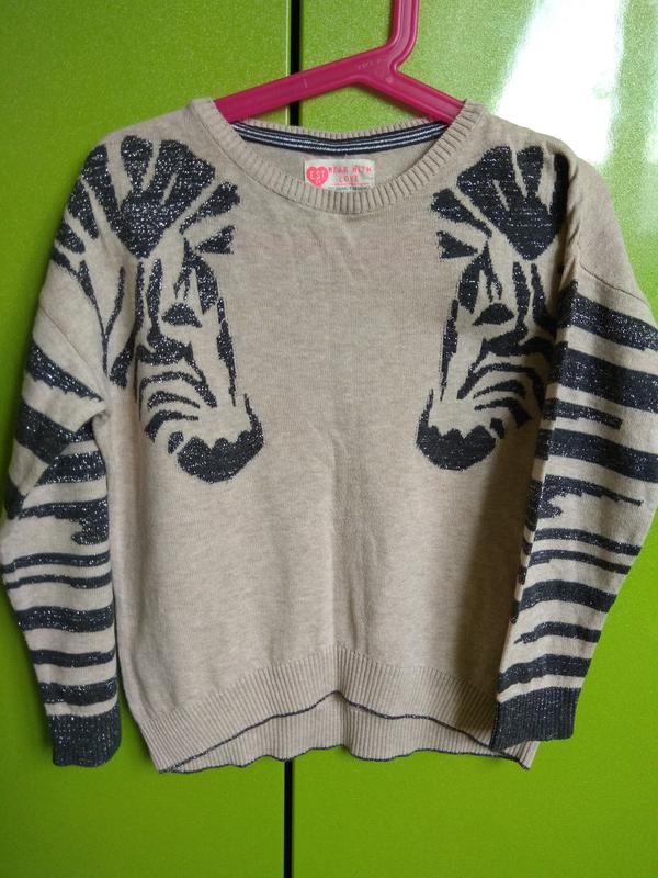 стильна кофта з зебрами за типом свитшота ( стан відмінний). Довжина спереду 40 см, ззаду 44 см, рукав від горловини 48 см, ширина в полуОГ 41см,в самому низу кофти ширина 32 див.