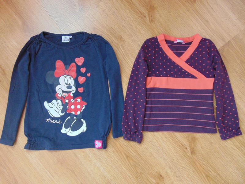 З Міккі на 5-6 років на ріст 116-122, в хорошому стані. довжина-42, ширина-30, рукав-40 Другий на 4-5 років на ріст 104-110 ми носили до 116, у відмінному стані. Довжина-36, ширина-28, рукав-38.