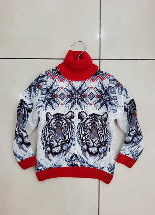 Мягкий и теплый свитер, выполнен в двойной вязке. Премиум качество, стильные принты! Подшерсток приятен для тела, а минимальный состав микроакрила позволяет держать изначальную форму в условиях регулярной стирки и сушки изделия. Отлично держит форму и сохраняет цвет. Благодаря своему составу, свитер имеет терморегуляцию. В нем очень тепло в лютый мороз, но при этом комфортно в помещении, в демисезонный период и даже в прохладный летний вечер. Идеальны для любой погоды и времени года. Износостойкость – 10 лет! Покрой: прямой Уход за вещами: бережная стирка при t⁰ не более 40⁰С. Размер: 3-4 / 5-6 / 7-8 лет Горловина: высокий воротник стойка. Производство: Турция 🇹🇷